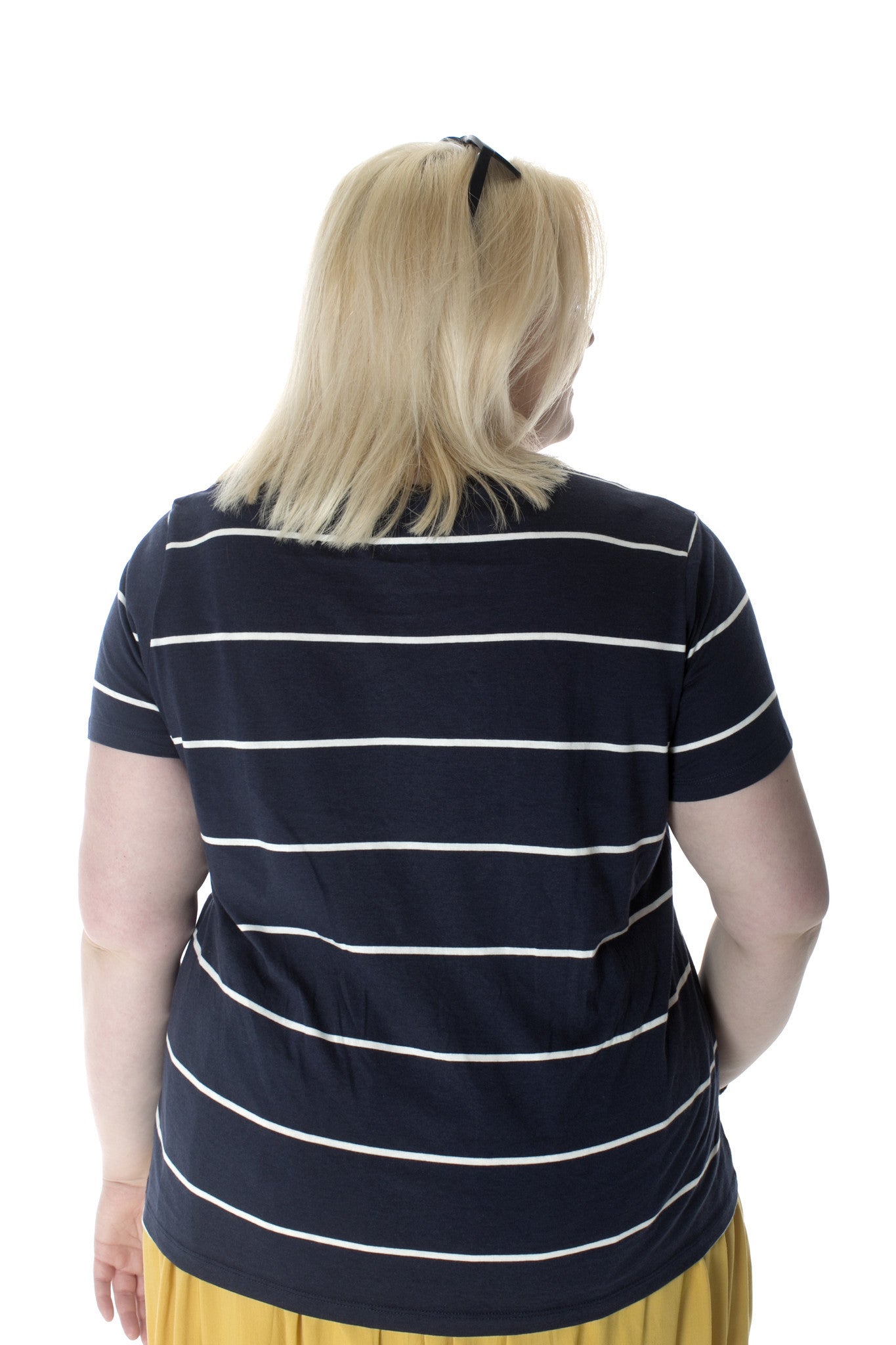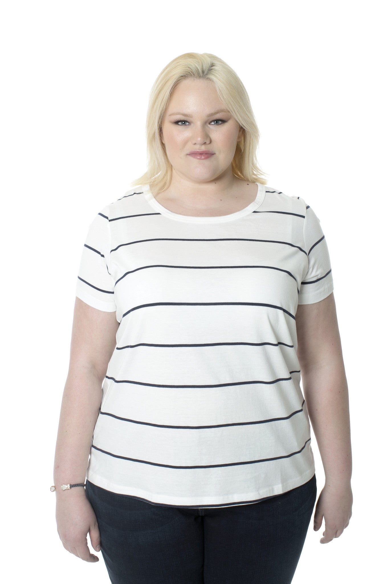 View full details for sizing info. This short sleeve striped tee is made of a super soft blend of cotton and modal. This tee has a crew neck and a casual slim fit.